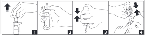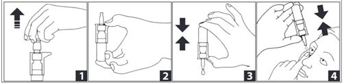 - Тримайте флакон догори дном і, натискаючи помпу, закрапайте в око призначену кількість крапель.