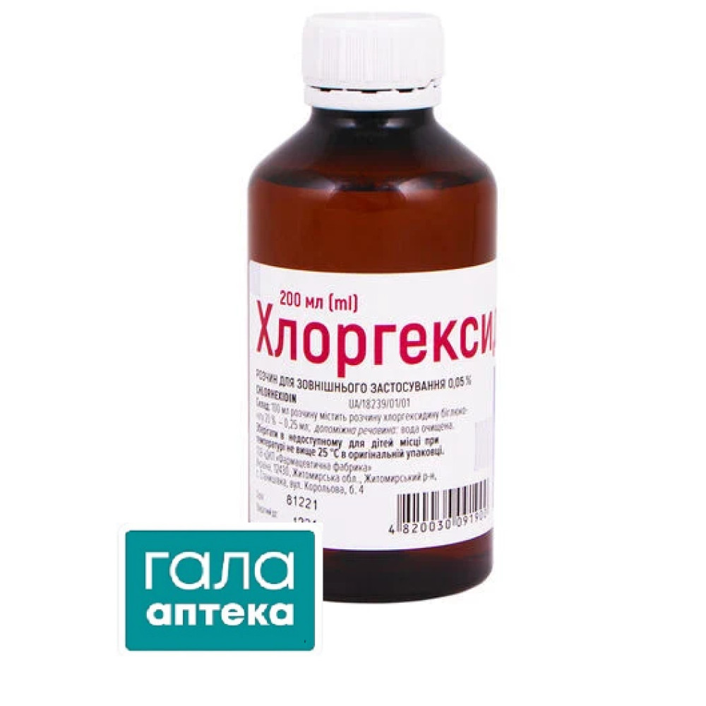 100 мл розчину містять розчину хлоргексидину біглюконату 20 % ‒ 0,25 мл;